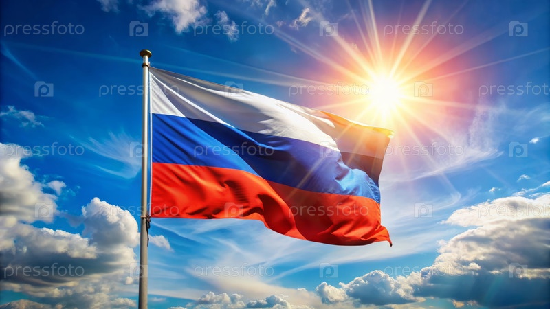 Российский флаг на фоне голубого неба