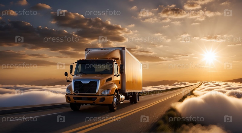 Грузовик на фоне дороги с облаками