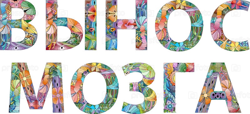 Ручная роспись художественного дизайна.Ручно нарисованные иллюстрации слов BRAIN BLOW на русском языке для футболок и других украшений