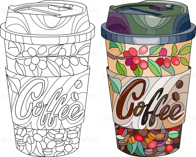 Чашка кофейного напитка с абстрактными орнаментами для раскраски