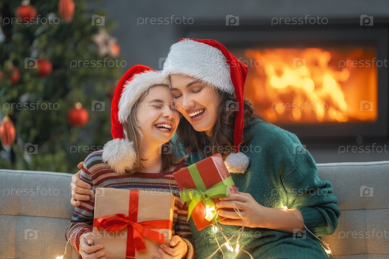 Семья празднует Рождество