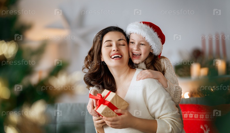 Семья празднует Рождество