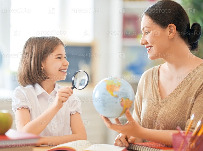 Девушка с учителем в классе
