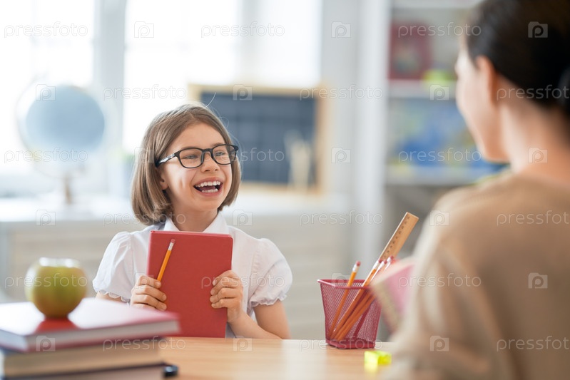 Девушка с учителем в классе