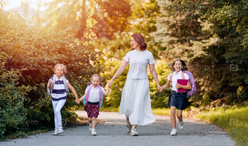 Родители и ученики идут в школу