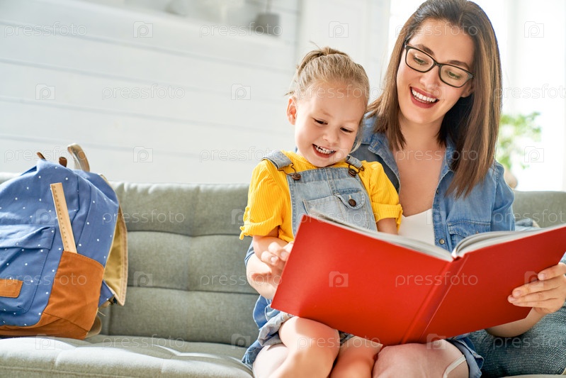 Мать и дочь читают книгу