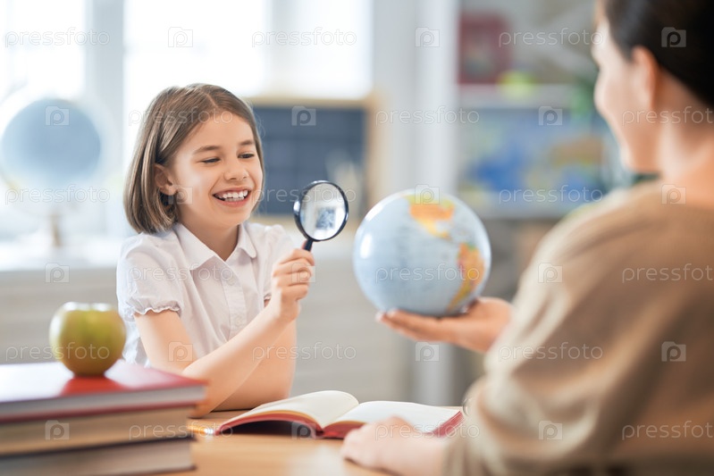 Девушка с учителем в классе