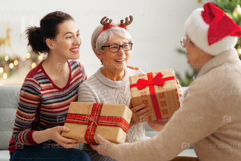 Семья празднует Рождество