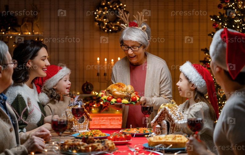 Семья празднует Рождество