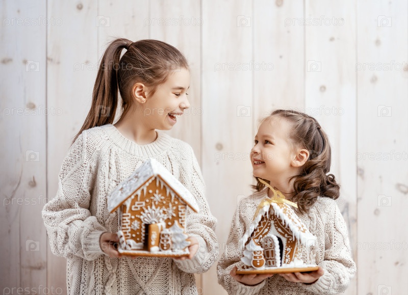 Девочки с рождественскими пряничными домиками