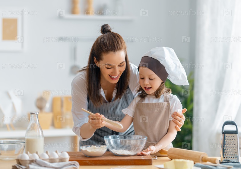 Семья вместе готовит выпечку