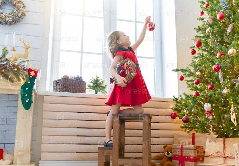 Девушка украшает елку