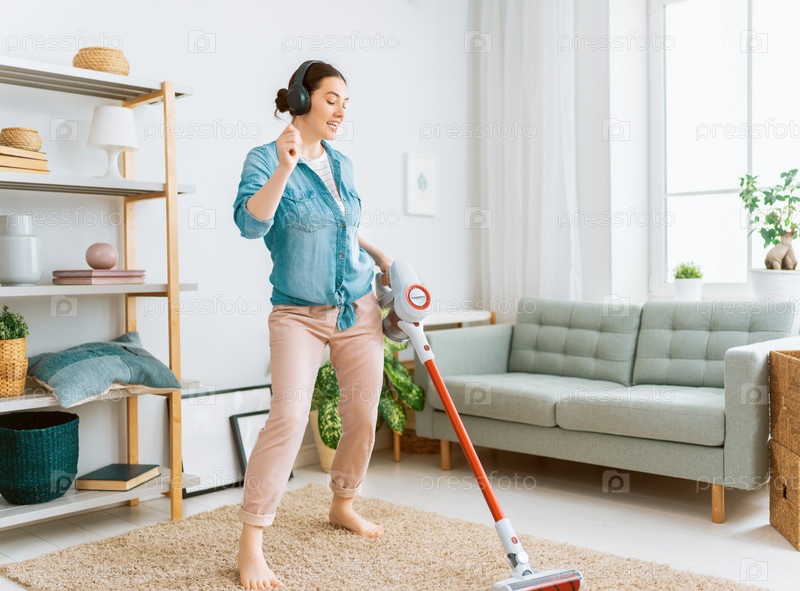Женщина занимается уборкой дома