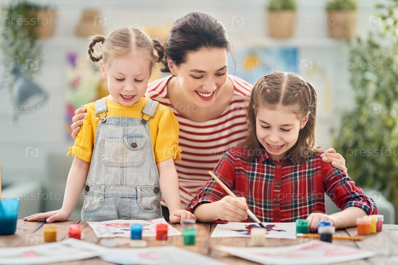 Счастливая семья рисует вместе