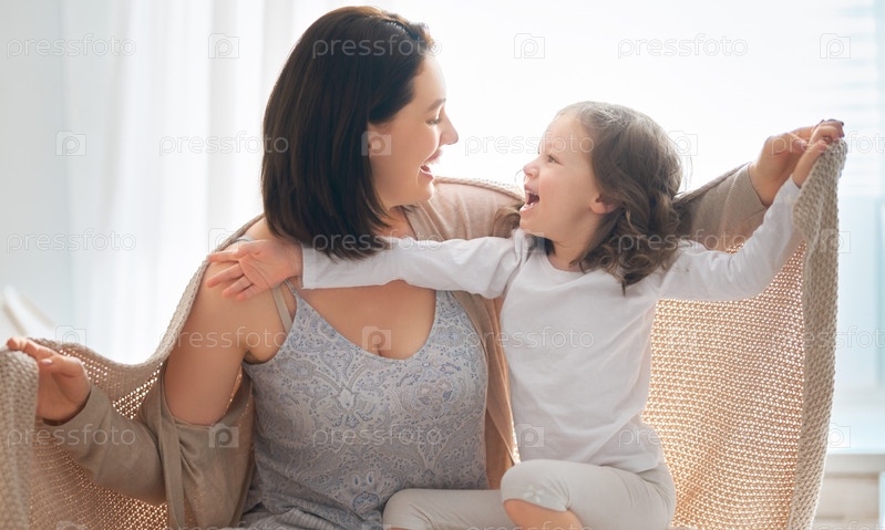 Девочка и ее мама наслаждаются солнечным утром