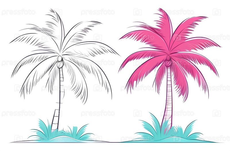 Изолированная кокосовая пальма акварельная иллюстрация, природное растение на белом фоне