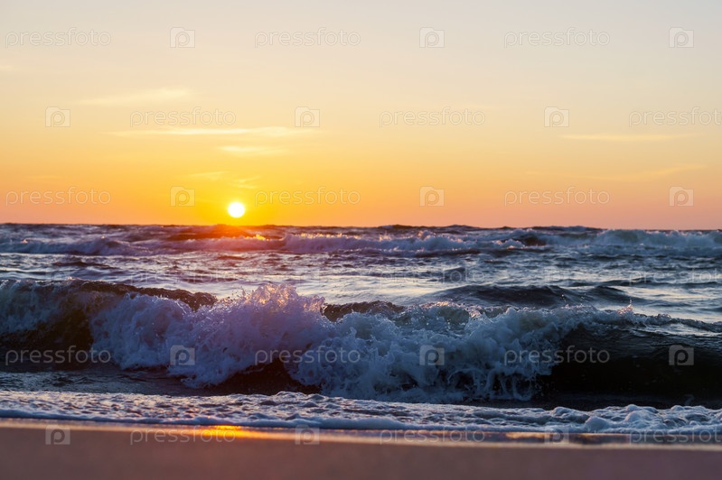 Закат над морем. Отражение солнечного света в морских волнах. Небо в лучах заката. Балтийское море