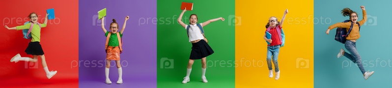 Дети с рюкзаками на красочном фоне