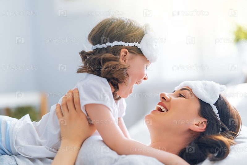 Девочка и мама наслаждаются солнечным утром