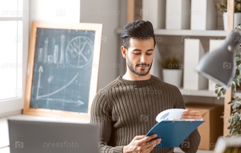 Мужчина работает дома за ноутбуком