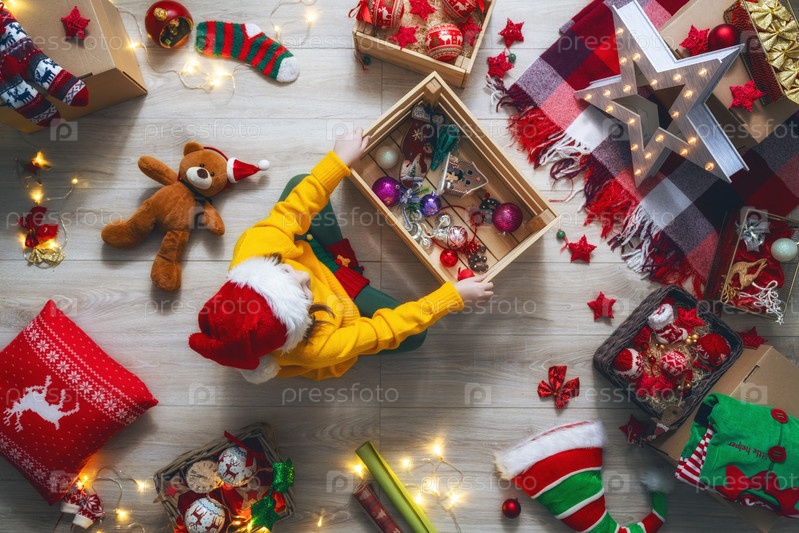 Девочка с елочными игрушками