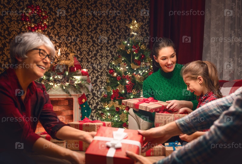 Семья празднует Рождество
