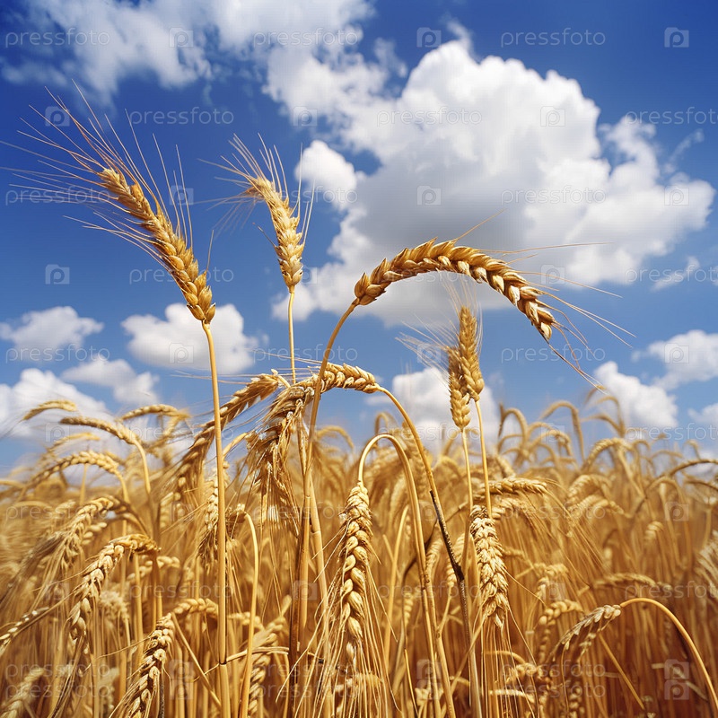 Пшеничное поле на фоне голубого неба