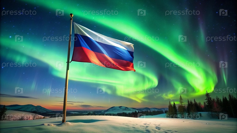 Российский флаг на фоне северного сияния