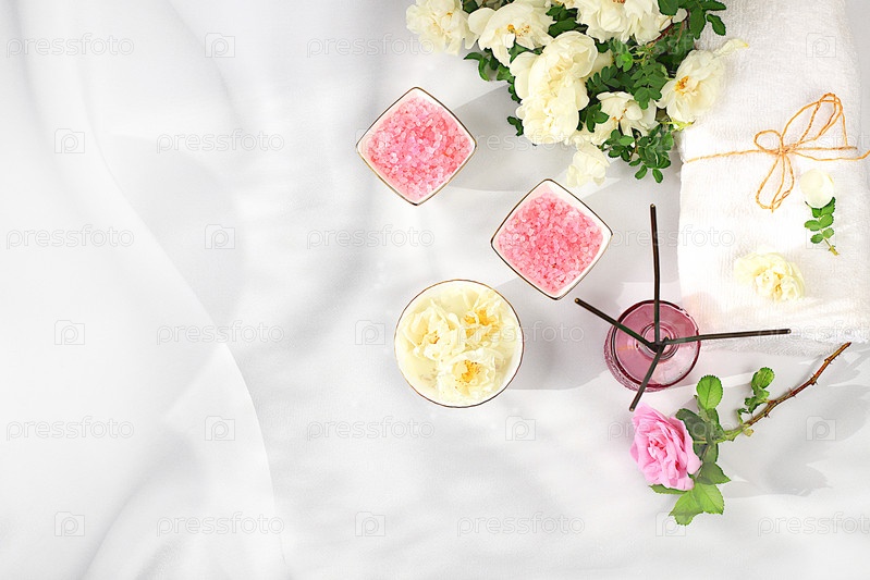 Спа и оздоровительная композиция, ароматическая роза сола, ароматические сиреневые палочки и цветы розы, приглашение и реклама салона, ароматерапия и уход за кожей, концепция образа жизни и органической косметики, избирательный фокус