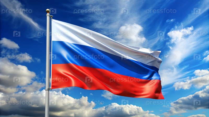 Российский флаг на фоне неба и облаков