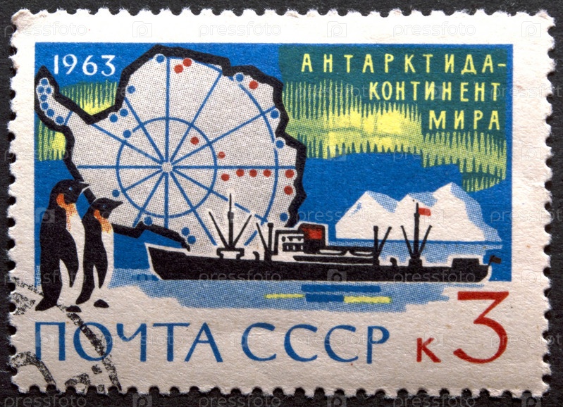Почтовая марка с гашением СССР 1963 год. Антарктида - континент мира