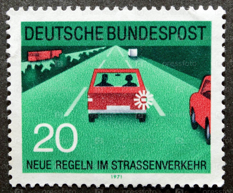 Почтовая марка с гашением Германия 1971 год. Безопасность дорожного движения. Включите указатель поворота после обгона