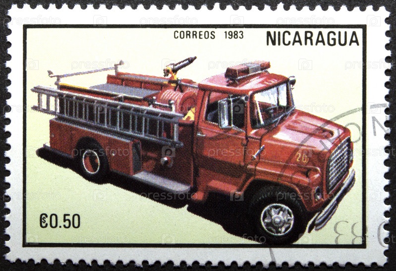 Почтовая марка с гашением Никарагуа 1983 год. Пожарная машина