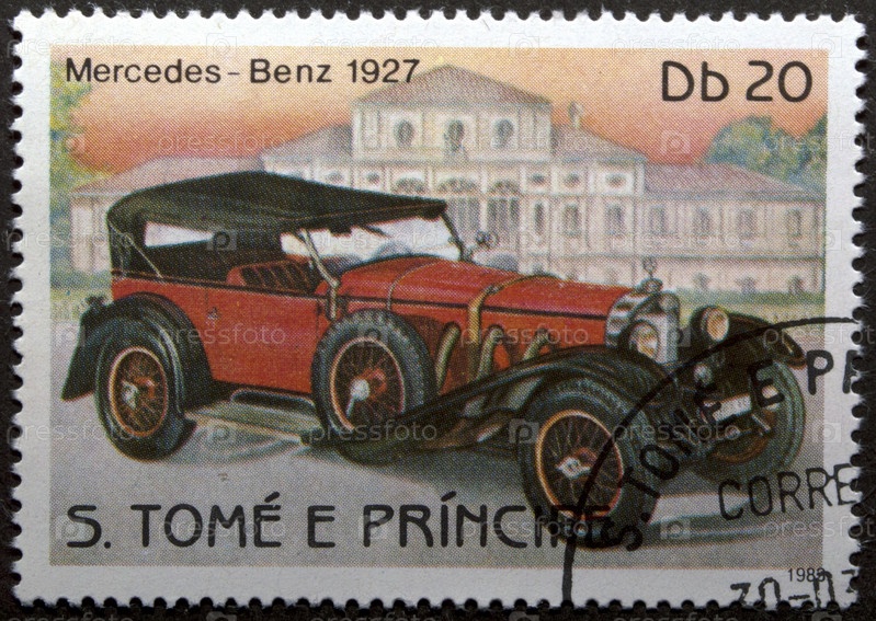 Почтовая марка с отметкой Сан-Томе и Принсипи 1983 г. Автомобиль Mercedes-Benz 1927