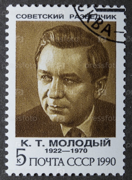 Почтовая марка СССР 1990 года. Советский разведчик К.Т. Молодый (1922-1970)