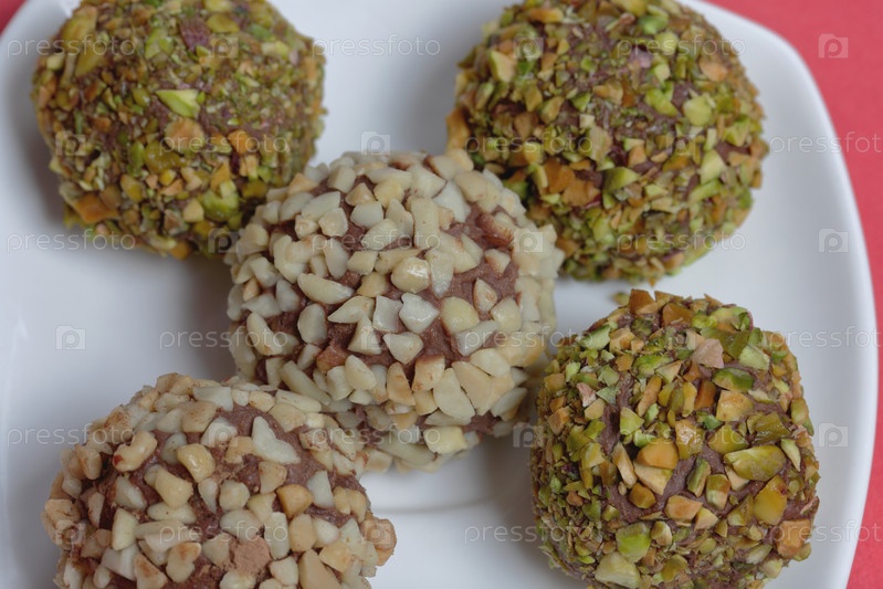 Домашние сладости. Шоколадные трюфели с крошкой арахиса и фисташками
