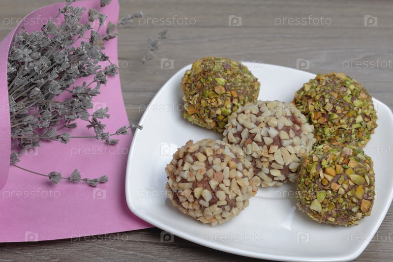 Домашние сладости. Шоколадные трюфели с крошкой арахиса и фисташками
