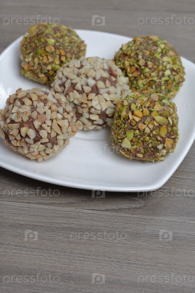 Домашние сладости. Шоколадные трюфели с крошкой арахиса и фисташками