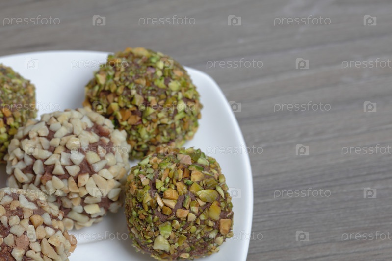 Домашние сладости. Шоколадные трюфели с крошкой арахиса и фисташками