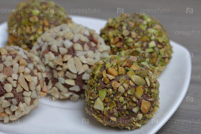 Домашние сладости. Шоколадные трюфели с крошкой арахиса и фисташками