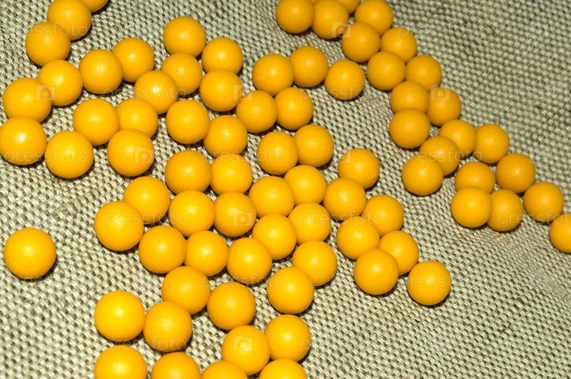 Витамины желтого цвета на ткани зеленого цвета