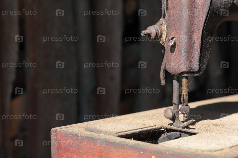 Старая швейная машинка с ручным приводом. Покрыт коррозией, пылью и паутиной