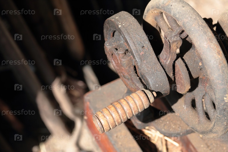 Старая швейная машинка с ручным приводом. Покрыт коррозией, пылью и паутиной