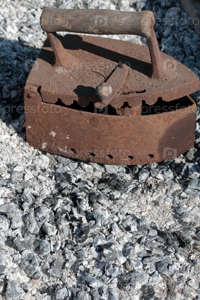 Редкий утюг, работающий на углях. На фоне потухших углей