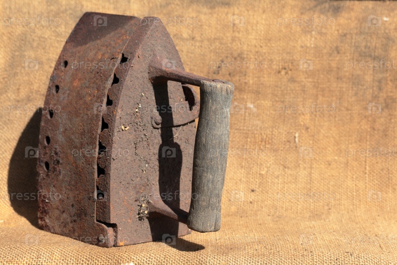 Редкий утюг, работающий на углях. Он стоит на грубой ткани