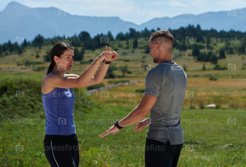 Победоносные объятия: романтические рукопожатия пары после успешного ежедневного забега