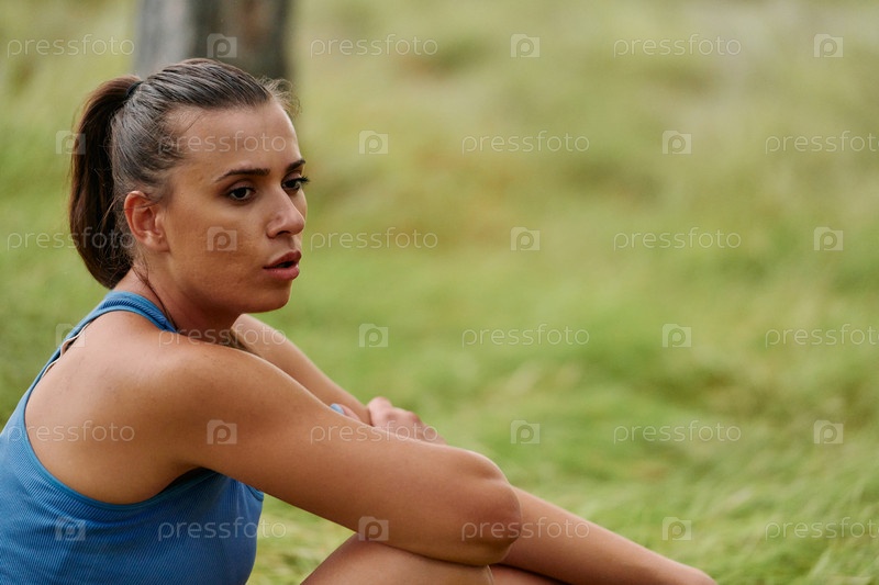 Женщина отдыхает после интенсивной пробежки