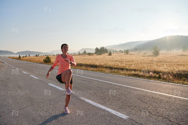 Решительная растяжка: спортивная женщина использует гибкость после пробежки на природе