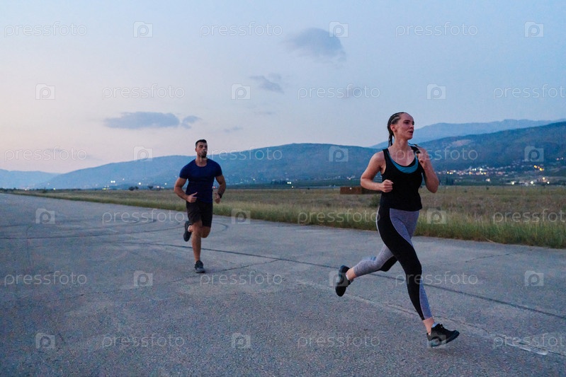 Группа друзей ведет здоровый образ жизни, бегая на свежем воздухе в солнечный день, занимаясь фитнесом и наслаждаясь бодрящим эффектом физических упражнений и природы