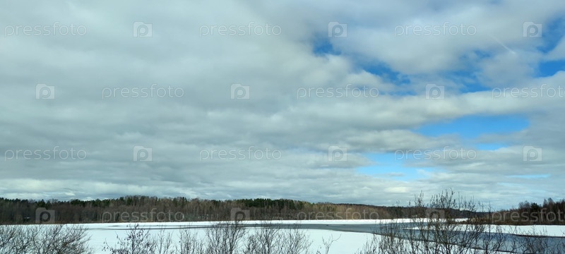Облака над замерзшей рекой